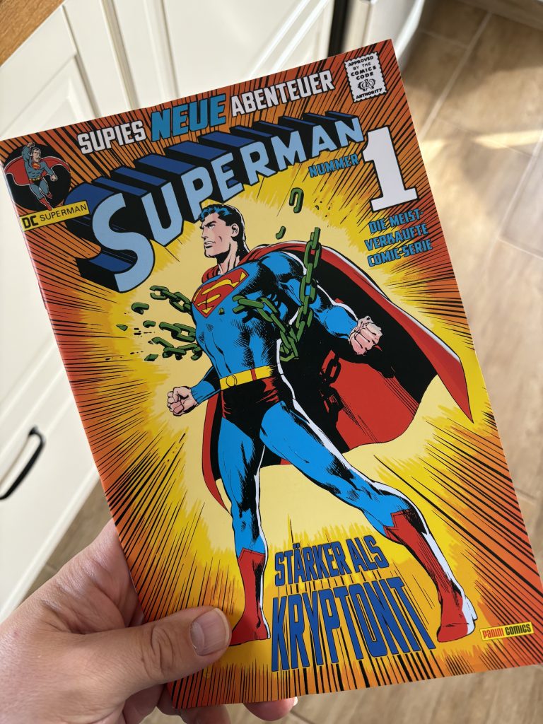 Ein echtes Highlight für den Comic-Sammler in mir: die Superman Vintage Edition. Der Band macht schon auf den ersten Blick einen richtig coolen Eindruck. Allein das Cover versprüht diesen Retro-Charme, den man als Fan einfach lieben muss. Ich bin wahnsinnig neugierig, wie sich der Klassiker im Lesefluss anfühlt.