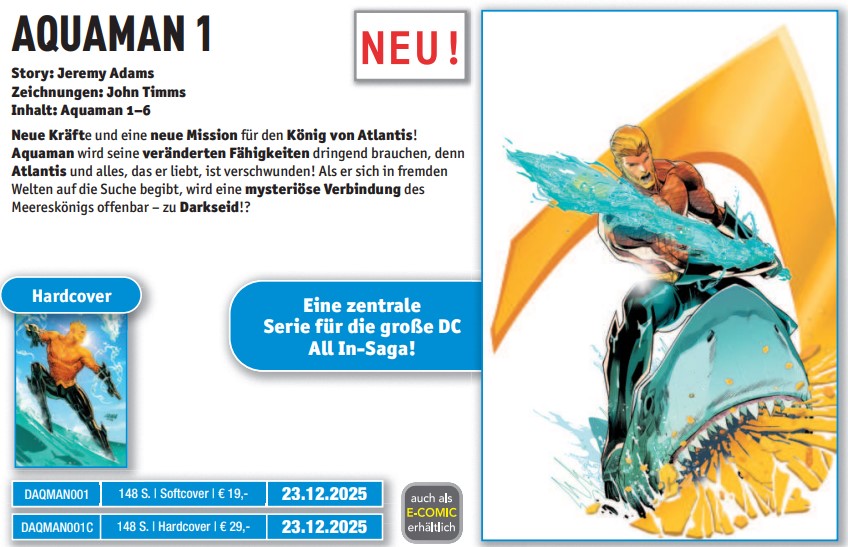 - Aquaman #1 (ET 23.12.25) – laut Vorschau eine zentrale Serie für die große ALL IN-Saga. Da ich Aquaman sehr mag, definitiv ein Pflichtkauf!
