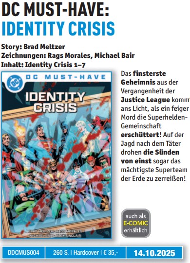 - DC Must-Have: Identity Crisis (ET 14.10.25) – landet direkt auf meiner Kaufliste!
