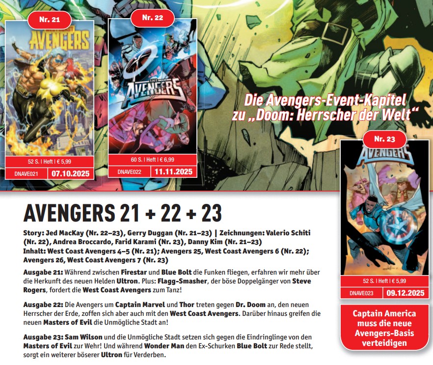 Die Avengers-Heftserie läuft mit den Ausgaben 21–23 weiter: