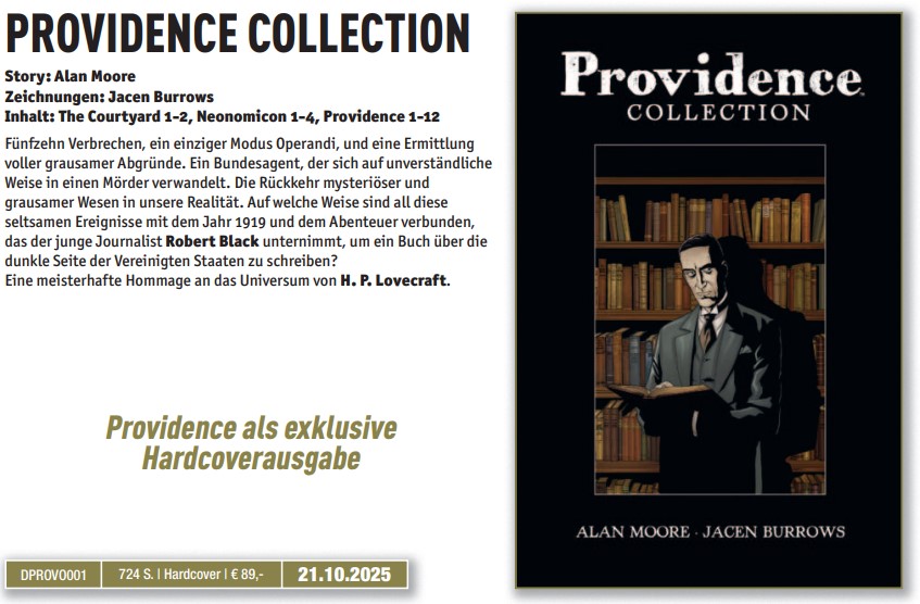 - Providence Collection von Alan Moore (ET: 21.10.25) – ein echtes Brett, allerdings schreckt mich der Preis noch ein wenig.